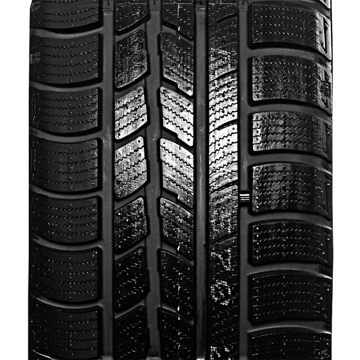 Die hohe Traktion ist das Verdienst der asymmetrischen Lauffläche, die durch wellenförmige Quereinschnitte erweitert wird. Das fortschrittliche Netz von unregelmäßig angeordneten Lamellen greift sich in den Schnee bzw. Schneematsch, wodurch der Bremsweg verkürzt wird.